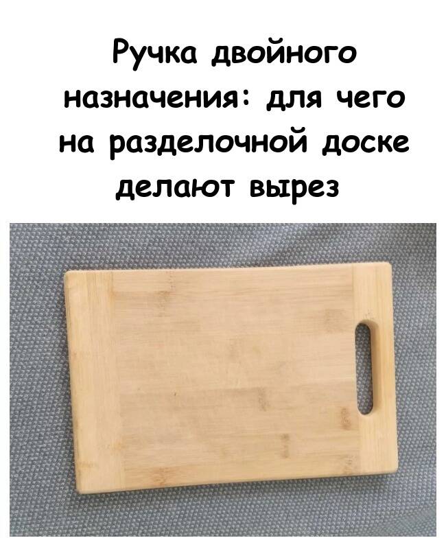 Без разделочной доски на кухне никуда – это один из первых и самых важных помощников. С её помощью удобно и безопасно нарезать продукты, разделывать мясо, при этом она защищает столешницу от царапин. Однако не все разделочные доски одинаковы, и у некоторых из них есть маленький секрет. Речь идет о тех, у которых ручка с вырезом. На первый взгляд кажется, что она нужна только для переноски. Но на самом деле у этого элемента есть двойное назначение.