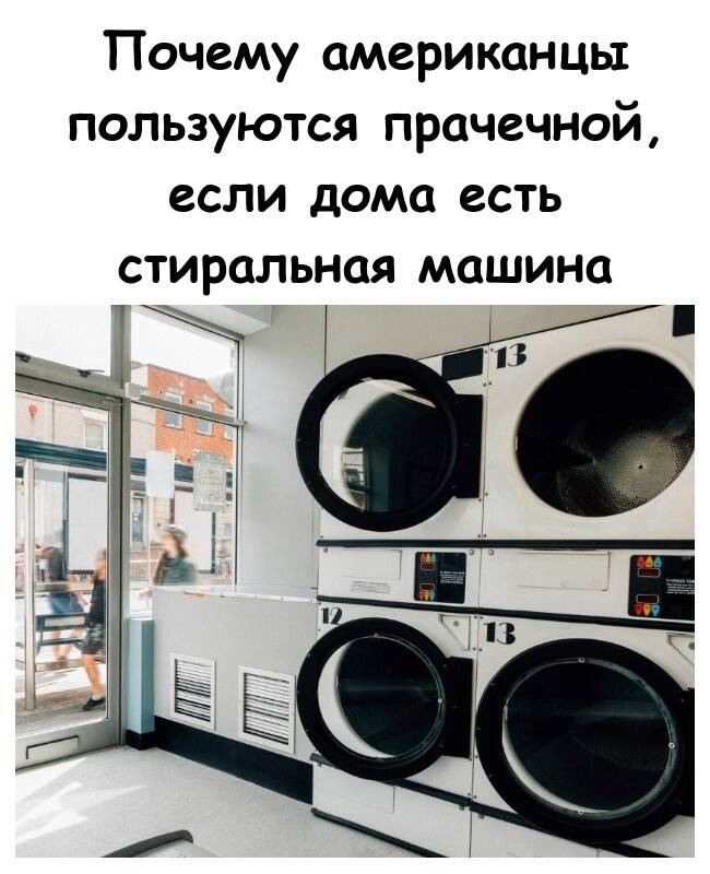 Многие американцы ценят время выше бытового комфорта. Дома стирка часто растягивается на несколько часов: сначала одна загрузка, потом сушка, потом вторая. В прачечной можно запустить несколько машин одновременно и за час-два полностью закончить весь процесс. Кроме того, прачечные обычно работают до позднего вечера, а некоторые — круглосуточно, что удобно для людей с плотным графиком.