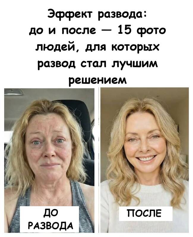 Развод часто воспринимают как болезненный и сложный процесс: разбитые надежды, эмоциональная боль и неопределённость будущего. Тем не менее со временем люди начинают восстанавливаться — и это видно на фото. Многие выглядят счастливее, увереннее, светлее и свободнее, чем раньше. Это даже стали называть "эффектом развода". Такой тренд набирает популярность в TikTok, где пользователи делятся своими историями изменений после окончания брака.