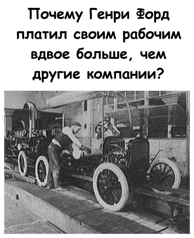 Таким образом, решение платить рабочим вдвое больше стало не только революцией в оплате труда, но и ключевым элементом стратегии, которая помогла Форду создать массовое производство автомобилей и изменить промышленный мир навсегда.