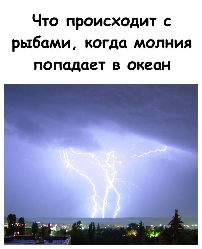Это объясняет, почему массовой гибели рыбы после удара молнии не происходит: океан слишком огромен, а глубины слишком велики — молния затрагивает только узкий слой поверхности.
