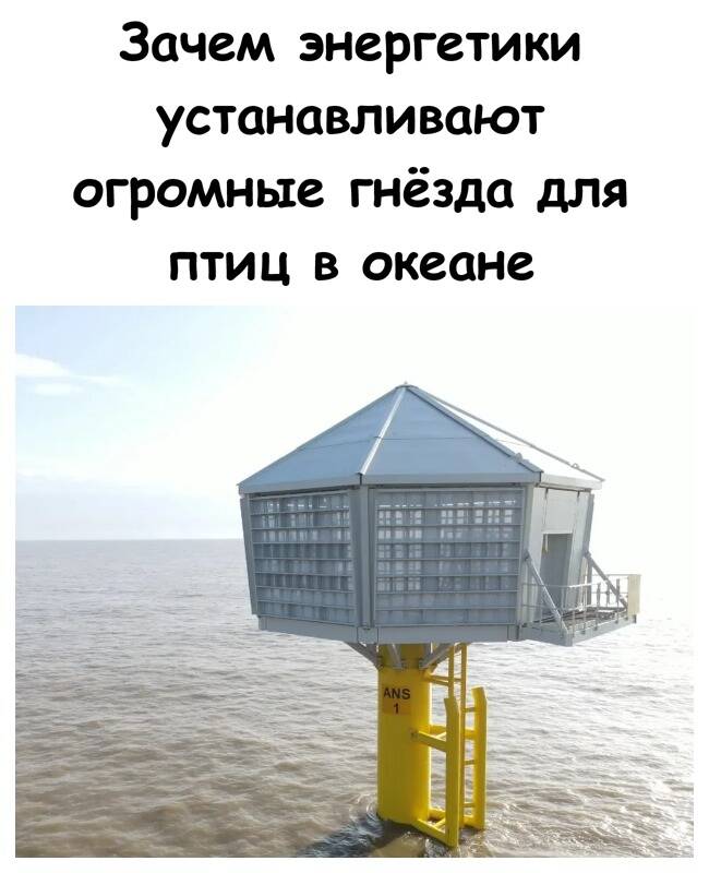 И вот здесь рождается очень необычное решение. Одна из крупнейших энергетических компаний мира, Ørsted, в рамках огромного проекта Hornsea 3 на севере Атлантического океана создала специальные искусственные гнёзда для птиц, чтобы компенсировать возможное влияние будущей ветровой электростанции на краснокнижный вид — черноногую крачку.