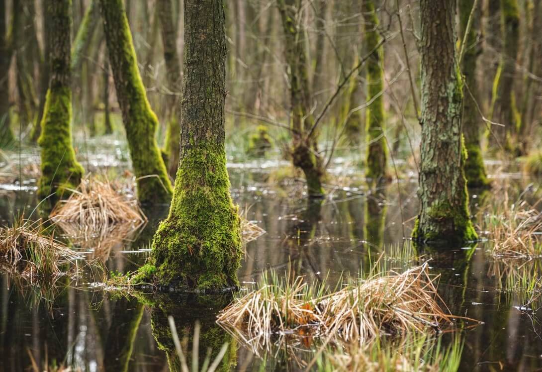 Пойменные и луговые болота — ближе к влажной земле с высоким содержанием воды. Обычно безопаснее для ходьбы, но иногда встречаются трясинные впадины.