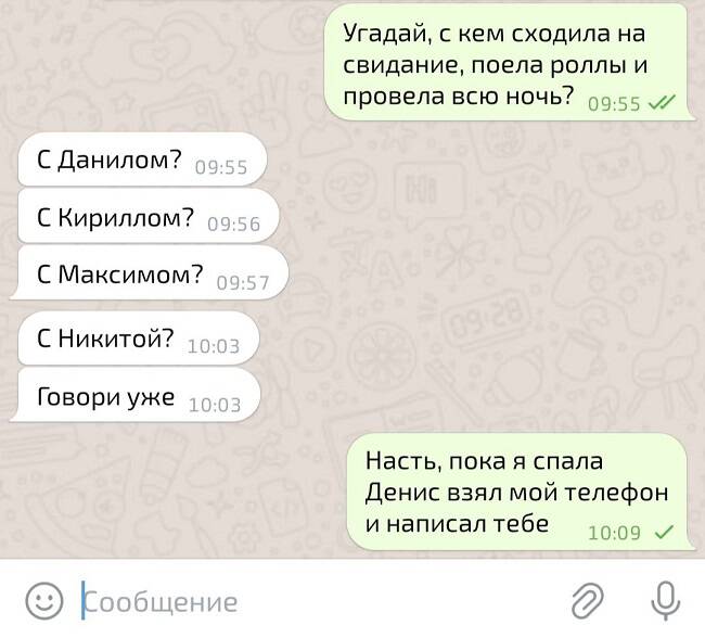Ежедневно общаясь в мессенджерах, мы знаем, что переписка не обходится без неожиданностей. Порой диалог набирает непредсказуемый поворот, а ее финал и вовсе вводит в ступор! В этой подборке вы прочтете свежую порцию смс-фрагментов. Одни вас рассмешат, а другие покажутся очень жизненными.