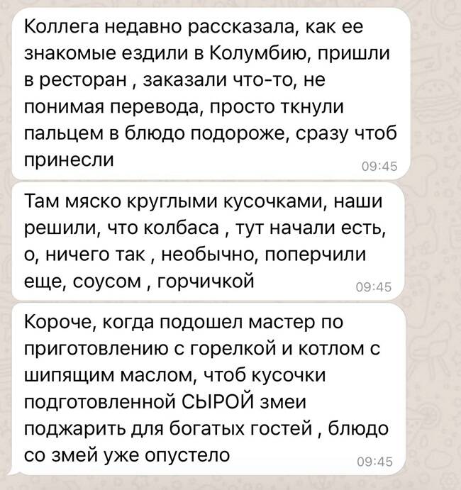 Есть вещи, характерные большинству из нас. Видимо поэтому, даже чужие переписки порой очень нам откликаются. Собеседники обсуждают в мессенджерах буквально всё. В этой подборке собраны 15 смешных и жизненных смс-фрагментов, которыми смело поделились их авторы в сети ради смеха: