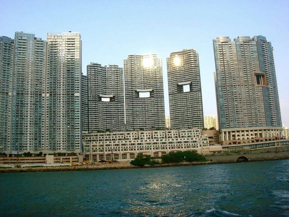 Среди примеров таких зданий — Repulse Bay: жилой комплекс с огромным прямоугольным «порталом» в середине корпуса, который туристы и блогеры зовут «dragon hole».