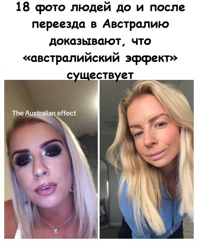 Переезд в другую страну часто сопровождается стрессом, но иногда изменения необходимы, особенно если новое место назначения богато красивыми пляжами и постоянным солнцем. Например, люди, переехавшие в Австралию, недавно стали "вирусными", начав показывать свои преображения до и после. Это уже назвали "австралийским эффектом" и обсуждают, как нечто удивительное, потому что отрицать перемены этих людей невозможно!