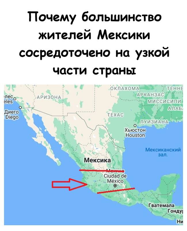 Мексика — одна из крупнейших в мире по площади и в топ-10 по численности населении — порядка 130 млн человек. Но распределено оно крайне неравномерно: значительная часть людей сосредоточена в центральной полосе страны — между Тихим океаном и Мексиканским заливом, на Месете (центральном нагорье) и особенно вокруг столицы, Мехико. Феномен этот — не современная случайность, поэтому мы и решили разобраться детальнее.