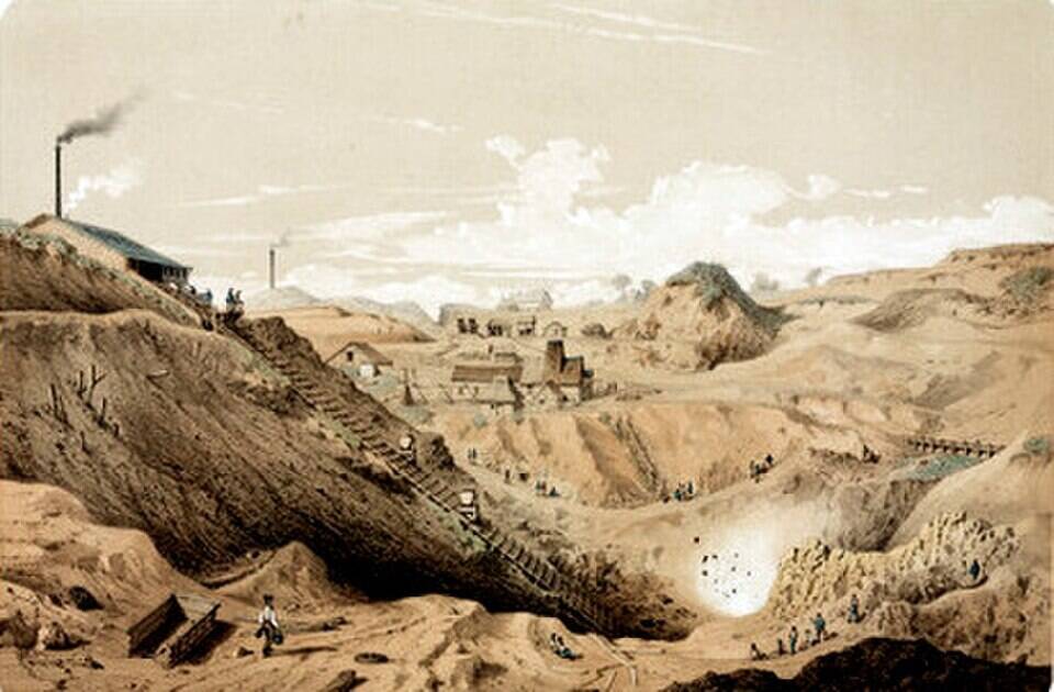 Литография цинкового завода Вьей Монтань в Мореснете, wikimedia