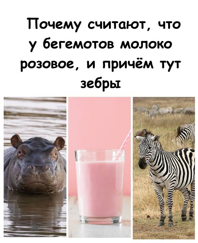 Почему считают, что у бегемотов молоко розовое, и причём тут зебры