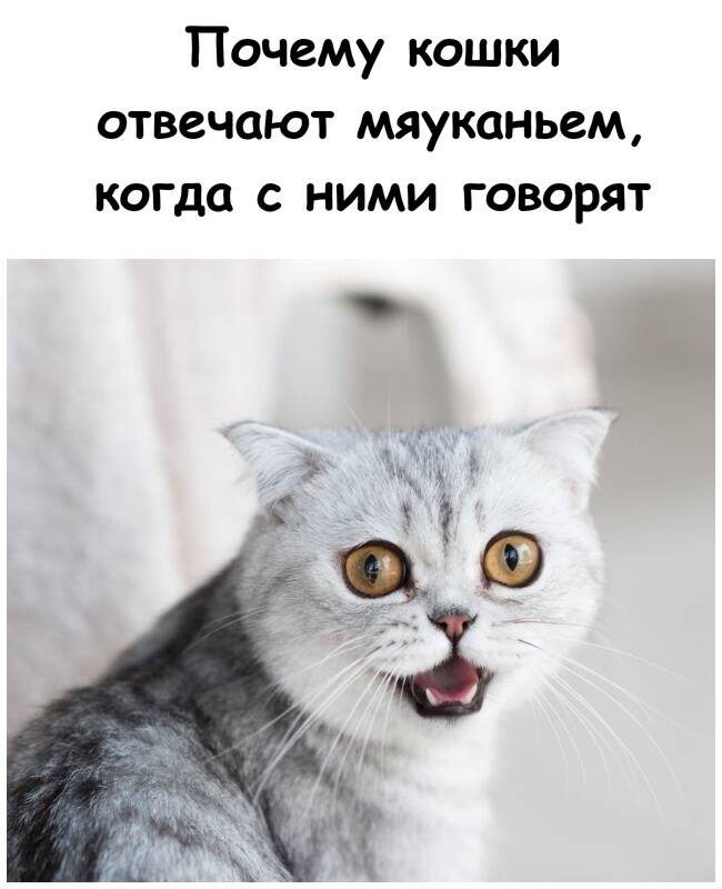 То есть мяукание в ответ — это не «мы говорим на одном языке», а обмен условными звуками, которые питомец «научился» связывать с результатом: общением, едой, лаской или вниманием.