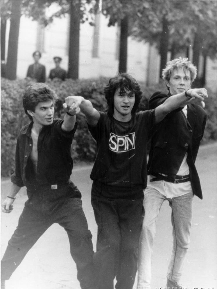 4. Юрий Каспарян, Виктор Цой и Игорь Борисов(бывший гитарист Кино) на 6-м Рок-фестивале. 1988 год