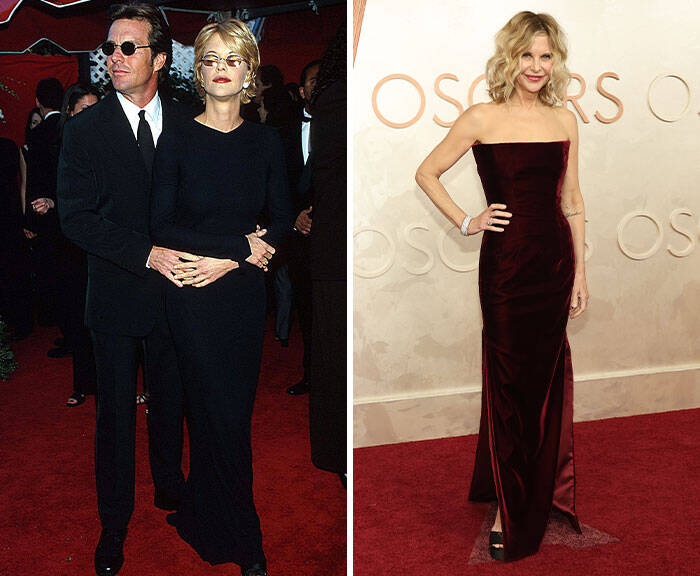 В 98-м она была на пике своей карьеры, аккурат перед выходом фильма "Вам письмо". Во время церемонии Райан вышла на сцену, чтобы вручить награду за лучшее художественное оформление, которая в итоге досталась фильму "Титаник". В 2025 она все так же блистала, поражая своим внешним видом, несмотря на возраст.